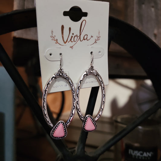 Viola Pink Skagway Silvertone Oval Earrings