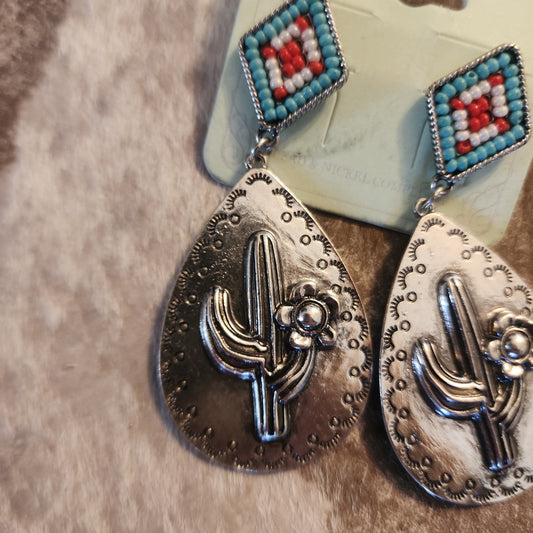 Hesston Turquoise Concho Silvertone Necklace and Earrings Set