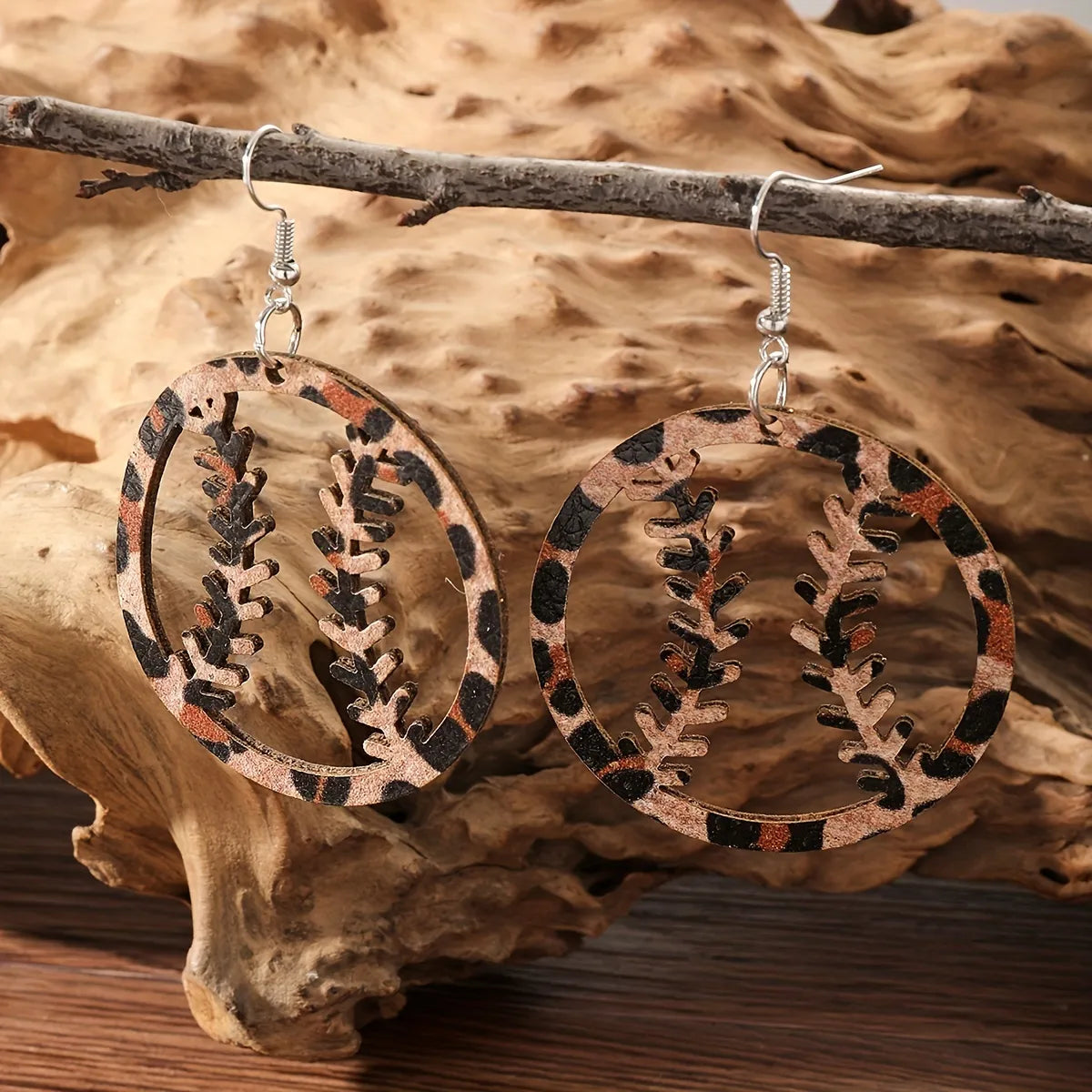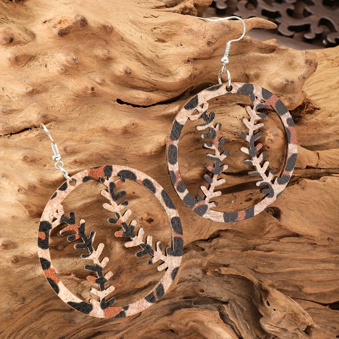 Baseball leaopard rubber earrings