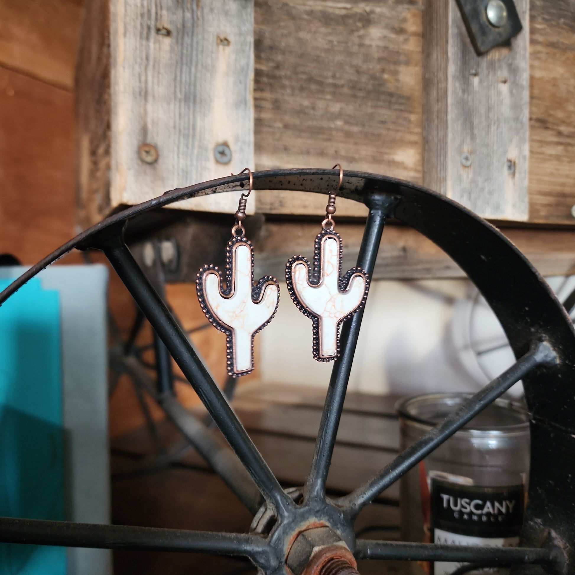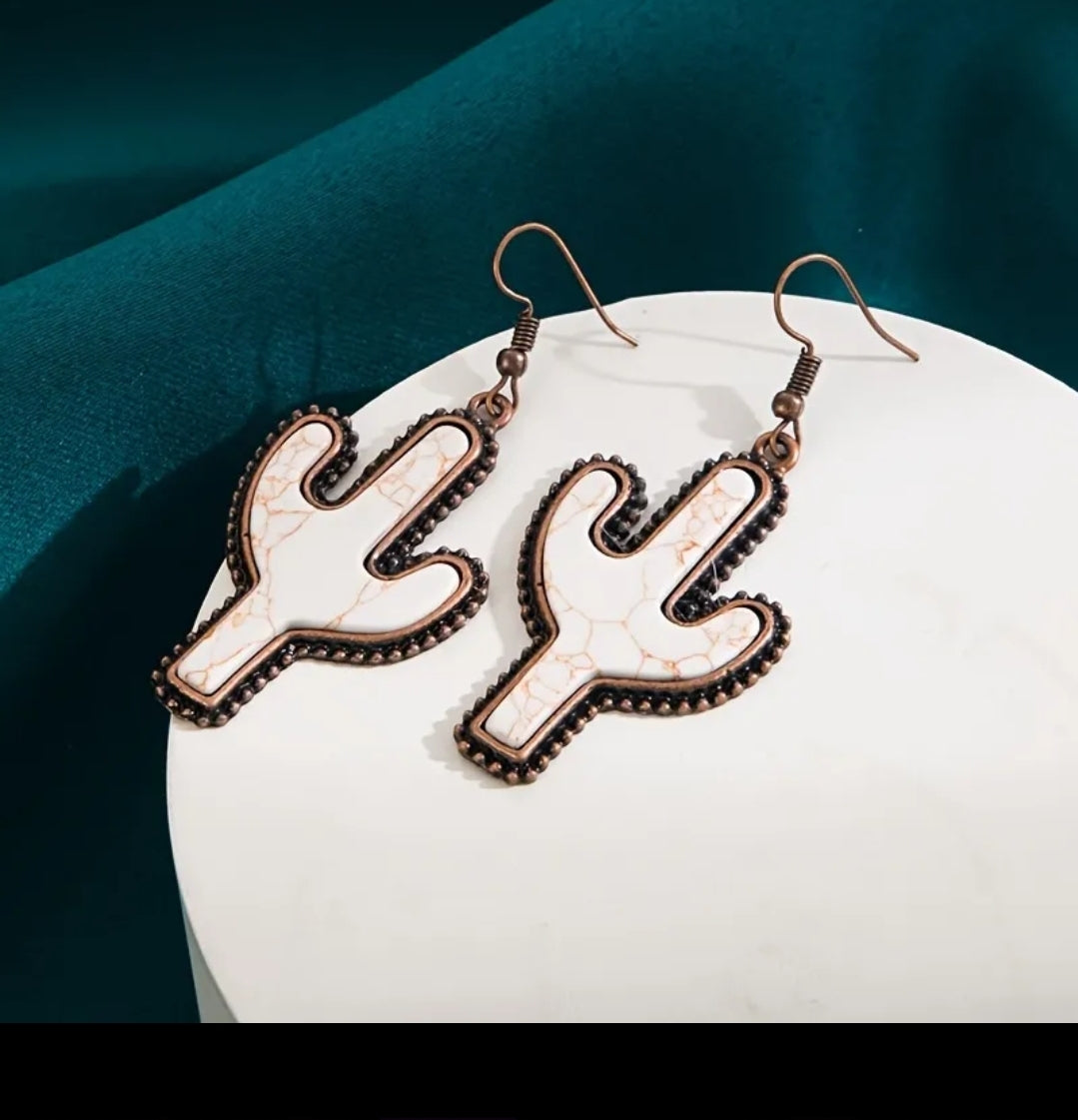 White stone cactus earrings.