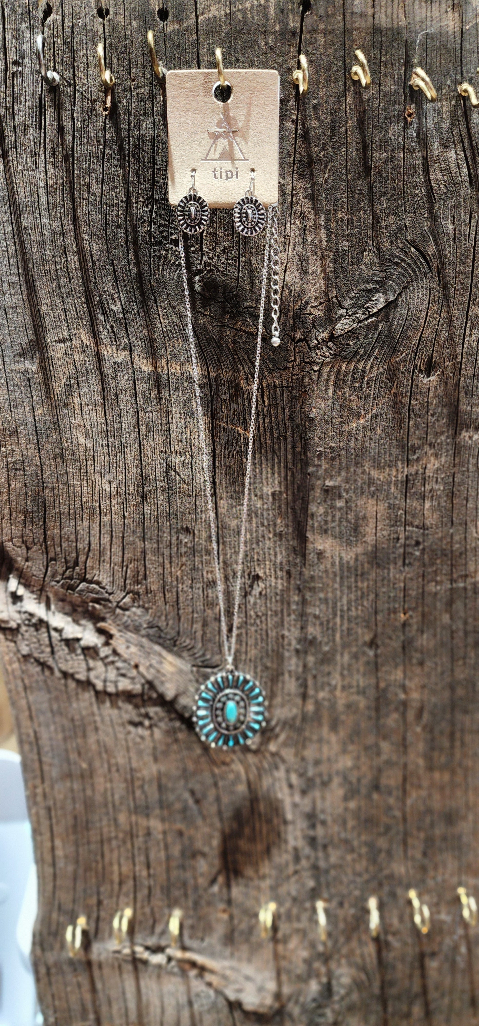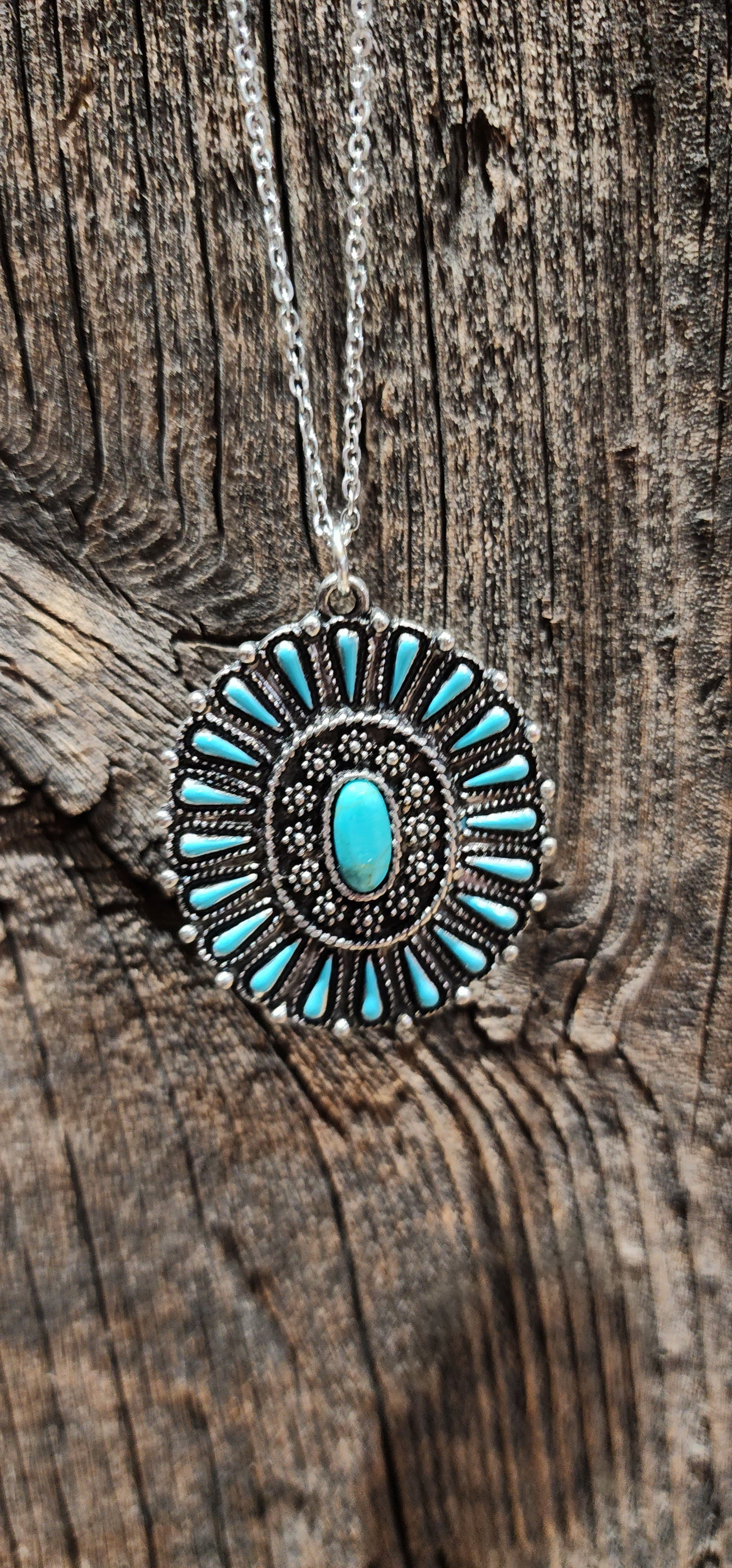 Turquoise desert flower necklace and earring set
